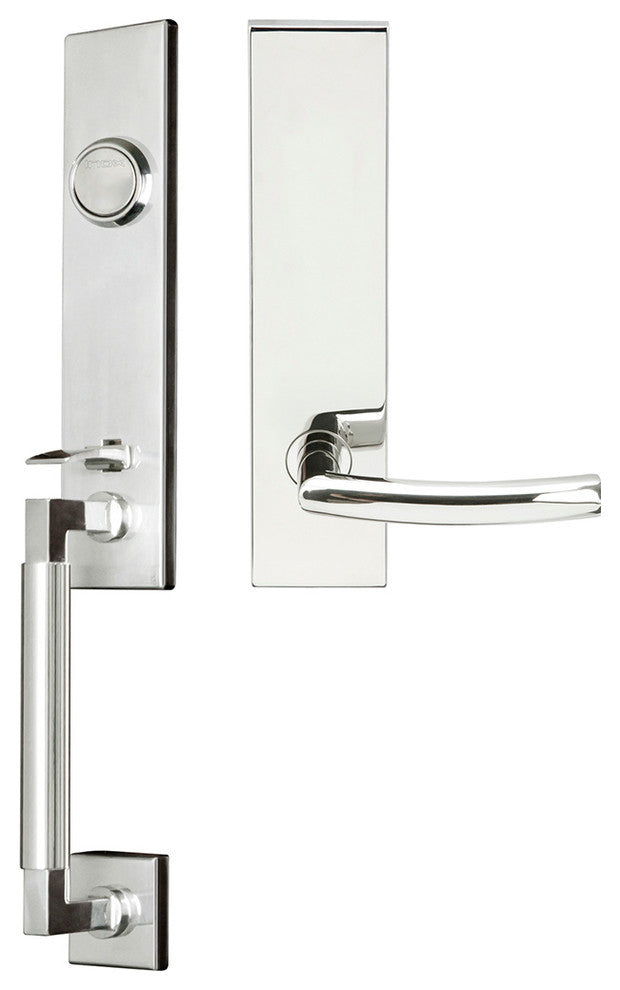 Dummy Handleset with NY New York Plate, 103 Oslo Lever, Full Dummy Tubular, Dummy Cylinder Outside, Dummy Plate Inside, Polished Stainless Steel (US32/629), Right Hand