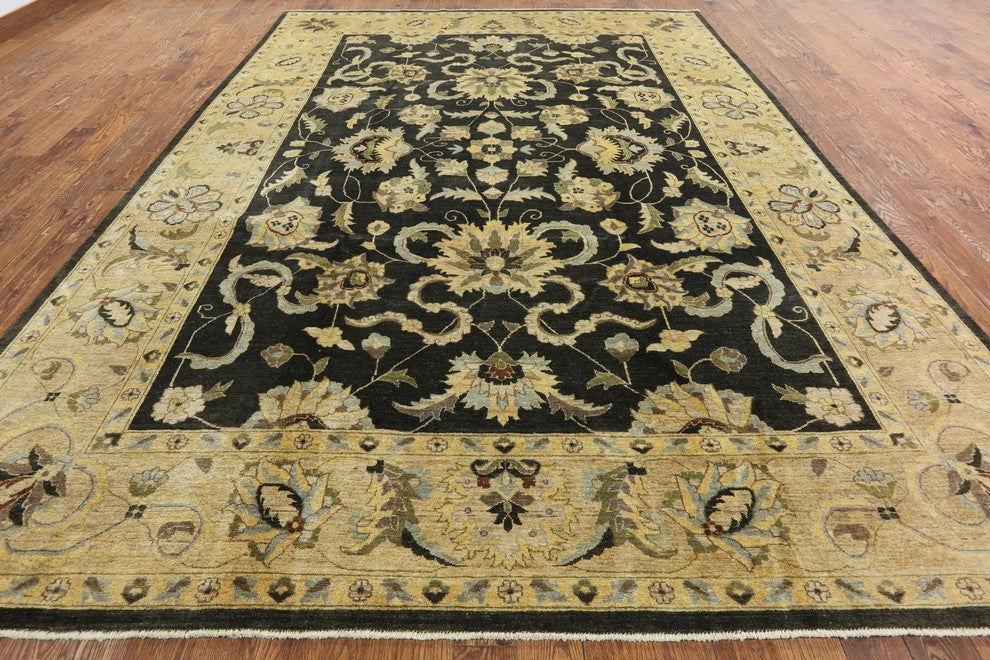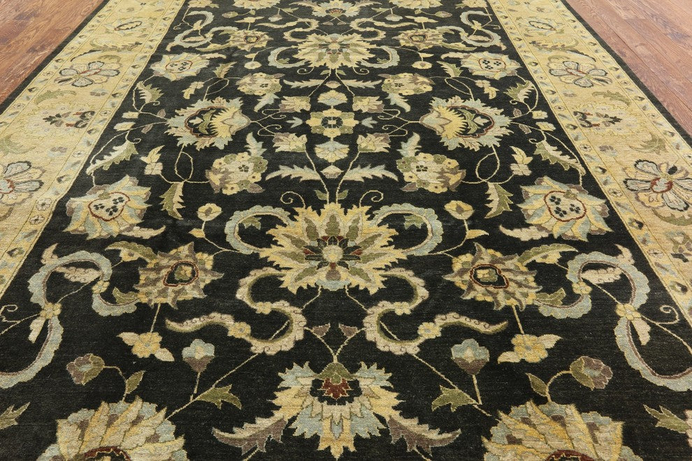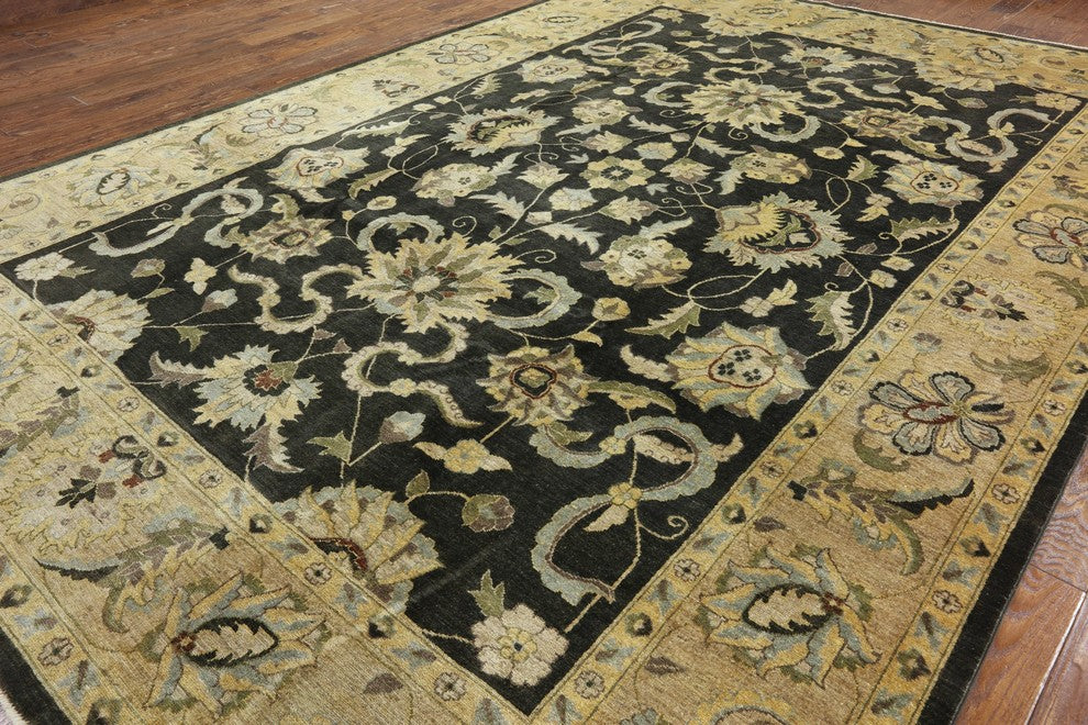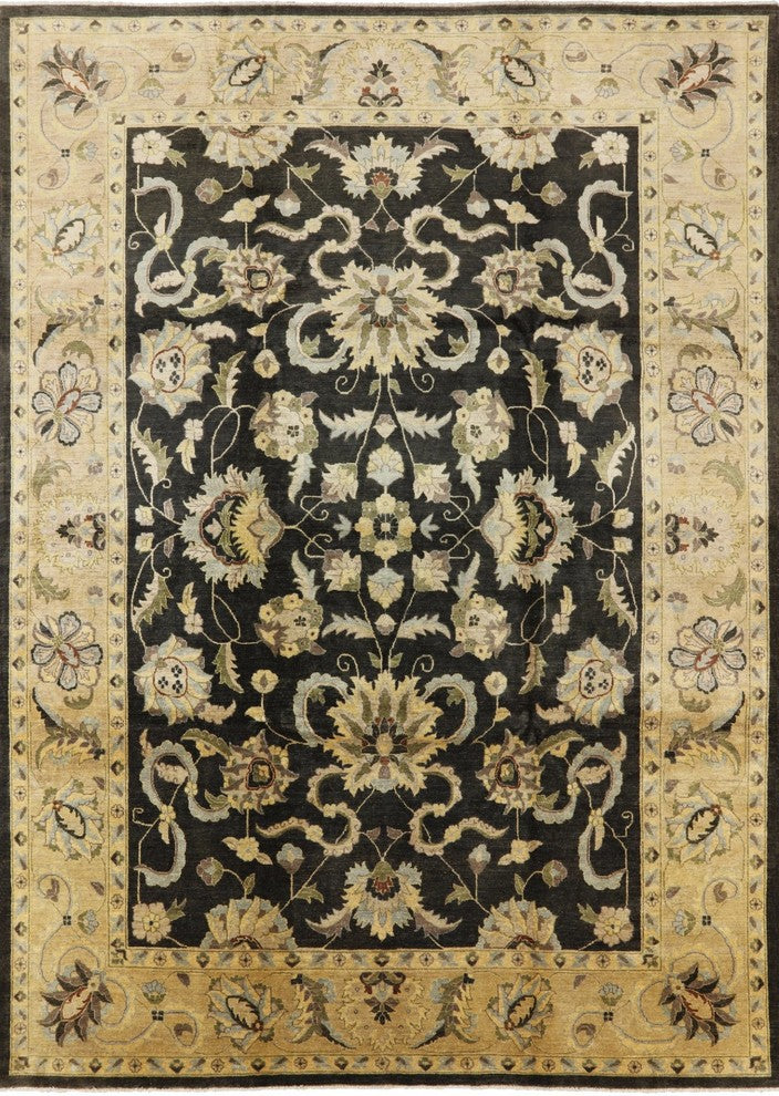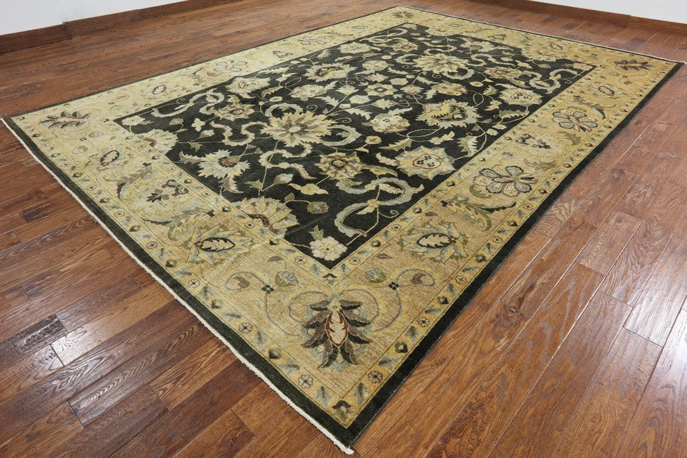 Oushak Brown Chobi Peshawar Hand-Knotted Wool Rug, 10'x14'