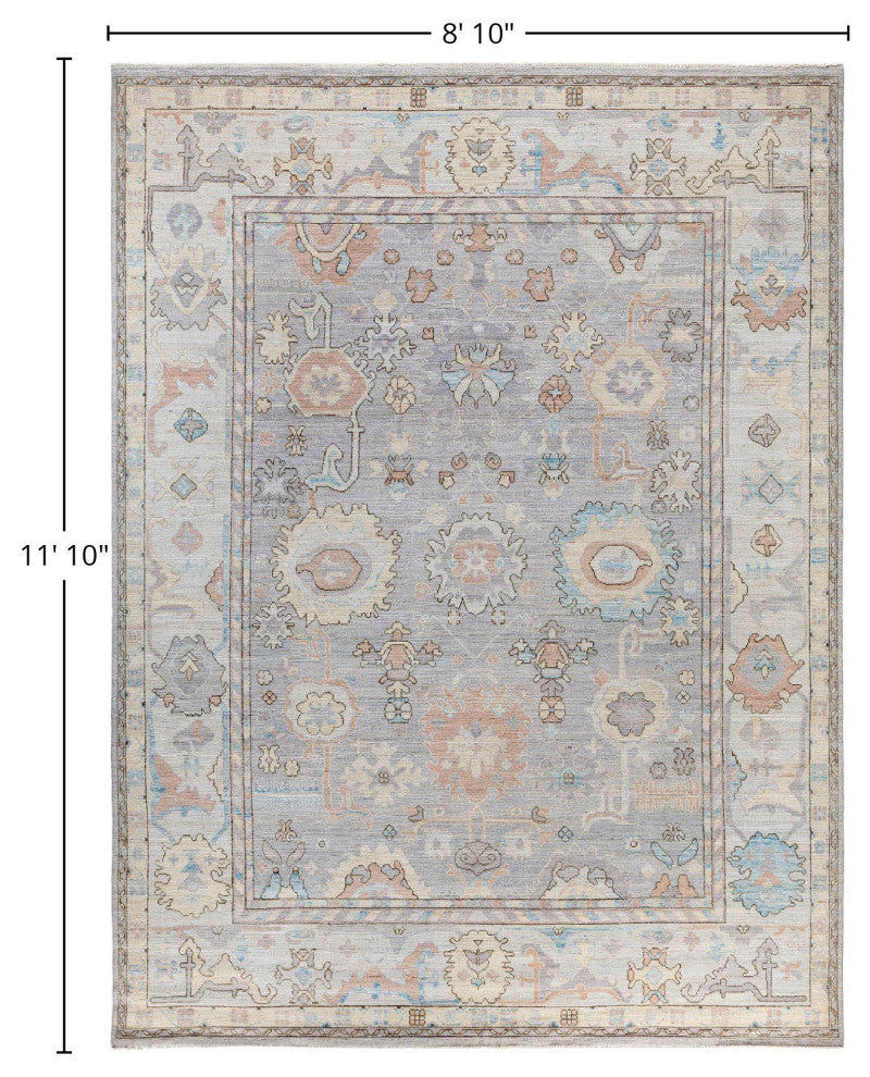 Originating centuries ago in what is now Turkey, Oushak rugs have long been sought after for their intricate patterns, lush yet subtle colors, and soft luster. These rugs honor that rich heritage and continue to captivate with their hand-knotted wool construction, ensuring their durability. Rest easy knowing that these rugs are not just fashionable but built to withstand the test of time, making them a cherished addition to your home for years to come.Features:Handcrafted by our team of experts in PakistanExceptional durability with 40 knots per inch constructionConstructed of 100% wool for a soft and cozy feelConvenient 8''10" x 11''10" dimensions offer the perfect balanced and inviting rug presenceNote that slight color variations may occur due to monitor differences. Embrace the individuality of each rug with minor variations in lengths, widths, and patternsDimensions:Area RugAssembled Product: 106 inches wide x 142 inches deep x 0.35 inches highLength: 142 inchesWe believe that a beautiful room starts from the ground up. That is what inspired our founders to start selling hand-knotted rugs over 40 years ago. Since then, our passion for well-designed, impeccably hand-made rugs has never wavered.Experience - With more than 40 years in the rug business, our knowledge of premium hand-knotted rugs is exceptional.Quality - Our focus is on hand-knotted rugs and only hand-knotted rugs. At a minimum, it takes months to complete each rug by hand -� that level of workmanship means our rugs are made to last.Variety - Our selection includes styles, sizes, and colors for every space and taste.