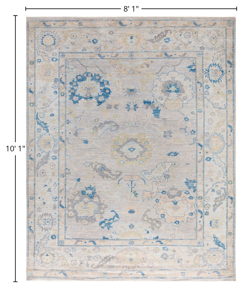 Originating centuries ago in what is now Turkey, Oushak rugs have long been sought after for their intricate patterns, lush yet subtle colors, and soft luster. These rugs honor that rich heritage and continue to captivate with their hand-knotted wool construction, ensuring their durability. Rest easy knowing that these rugs are not just fashionable but built to withstand the test of time, making them a cherished addition to your home for years to come.Features:Handcrafted by our team of experts in PakistanExceptional durability with 40 knots per inch constructionConstructed of 100% wool for a soft and cozy feelConvenient 8''1" x 10''1" dimensions offer the perfect balanced and inviting rug presenceNote that slight color variations may occur due to monitor differences. Embrace the individuality of each rug with minor variations in lengths, widths, and patternsDimensions:Area RugAssembled Product: 97 inches wide x 121 inches deep x 0.35 inches highLength: 121 inchesWe believe that a beautiful room starts from the ground up. That is what inspired our founders to start selling hand-knotted rugs over 40 years ago. Since then, our passion for well-designed, impeccably hand-made rugs has never wavered.Experience - With more than 40 years in the rug business, our knowledge of premium hand-knotted rugs is exceptional.Quality - Our focus is on hand-knotted rugs and only hand-knotted rugs. At a minimum, it takes months to complete each rug by hand -� that level of workmanship means our rugs are made to last.Variety - Our selection includes styles, sizes, and colors for every space and taste.