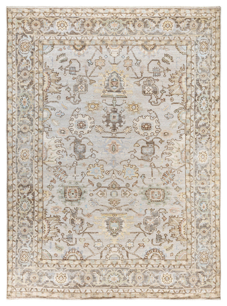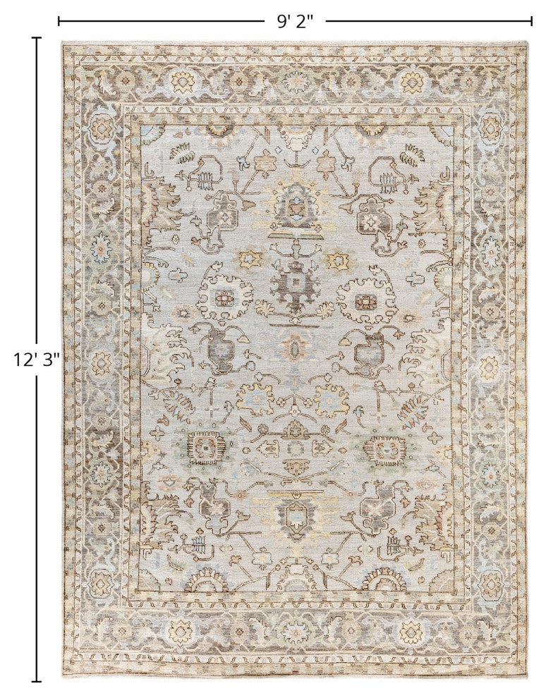 Originating centuries ago in what is now Turkey, Oushak rugs have long been sought after for their intricate patterns, lush yet subtle colors, and soft luster. These rugs honor that rich heritage and continue to captivate with their hand-knotted wool construction, ensuring their durability. Rest easy knowing that these rugs are not just fashionable but built to withstand the test of time, making them a cherished addition to your home for years to come.Features:Handcrafted by our team of experts in PakistanExceptional durability with 40 knots per inch constructionConstructed of 100% wool for a soft and cozy feelConvenient 9''2" x 12''3" dimensions offer the perfect balanced and inviting rug presenceNote that slight color variations may occur due to monitor differences. Embrace the individuality of each rug with minor variations in lengths, widths, and patternsDimensions:Area RugAssembled Product: 110 inches wide x 147 inches deep x 0.35 inches highLength: 147 inchesWe believe that a beautiful room starts from the ground up. That is what inspired our founders to start selling hand-knotted rugs over 40 years ago. Since then, our passion for well-designed, impeccably hand-made rugs has never wavered.Experience - With more than 40 years in the rug business, our knowledge of premium hand-knotted rugs is exceptional.Quality - Our focus is on hand-knotted rugs and only hand-knotted rugs. At a minimum, it takes months to complete each rug by hand -� that level of workmanship means our rugs are made to last.Variety - Our selection includes styles, sizes, and colors for every space and taste.