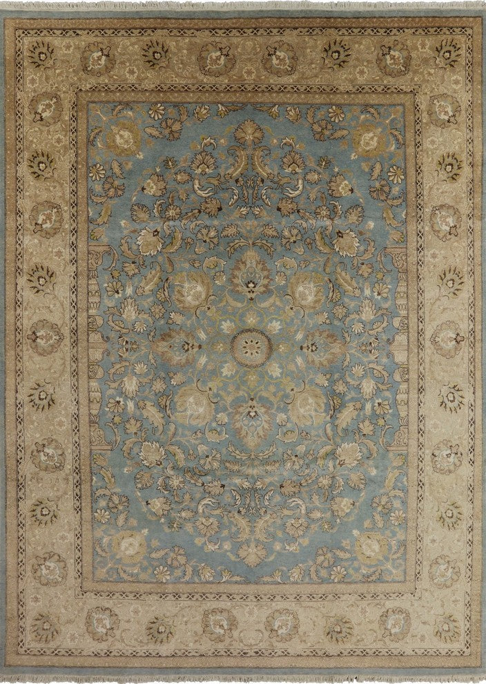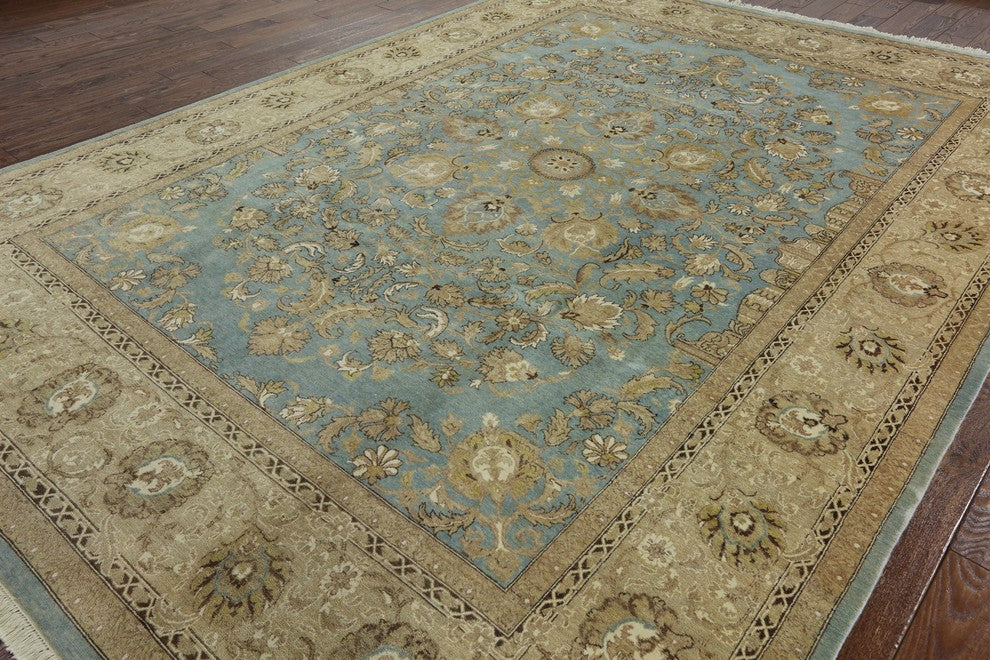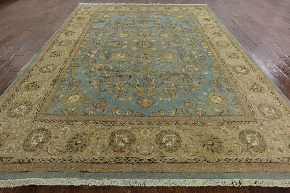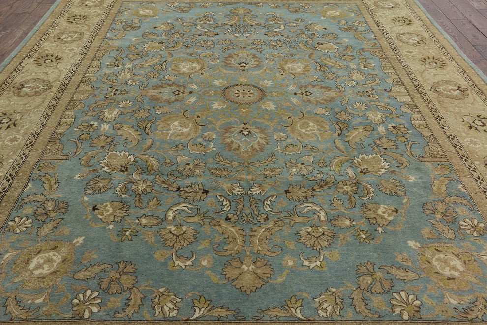 Oushak Peshawar Blue Hand-Knotted Chobi Wool Rug, 9'x13'
