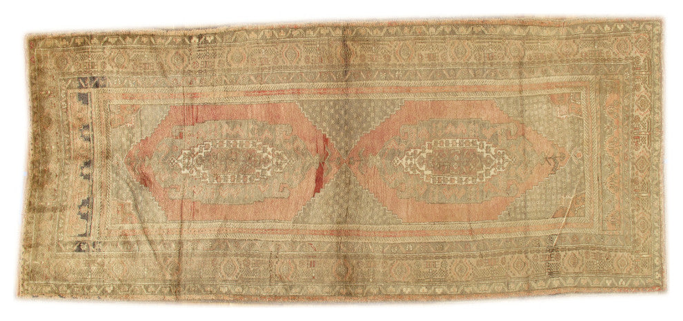 Vintage Oushak with a nice abrash to the top border. Soft pale peach, gray, and taupe.