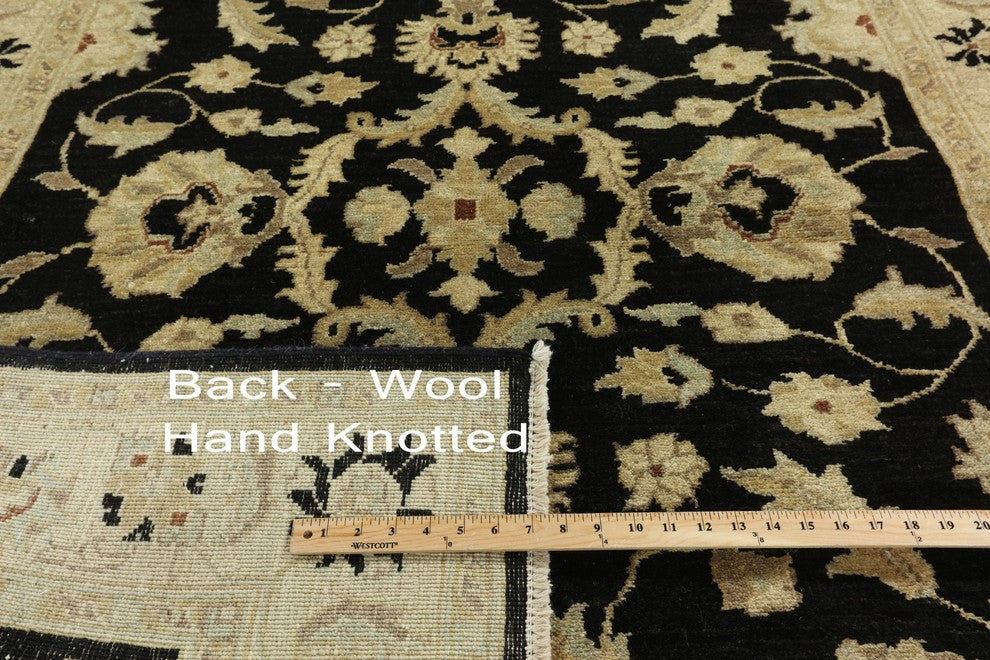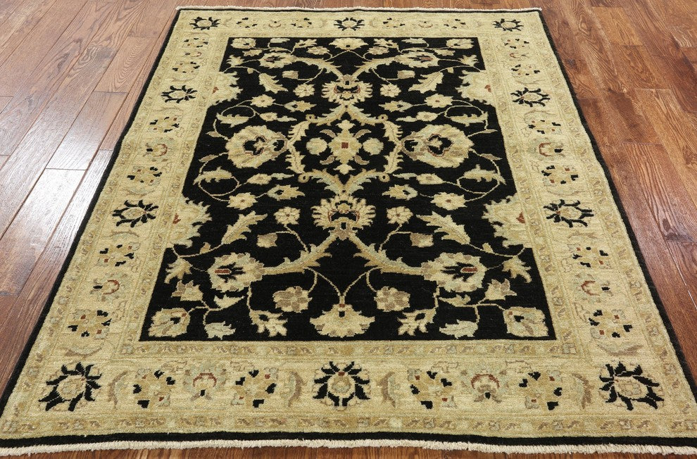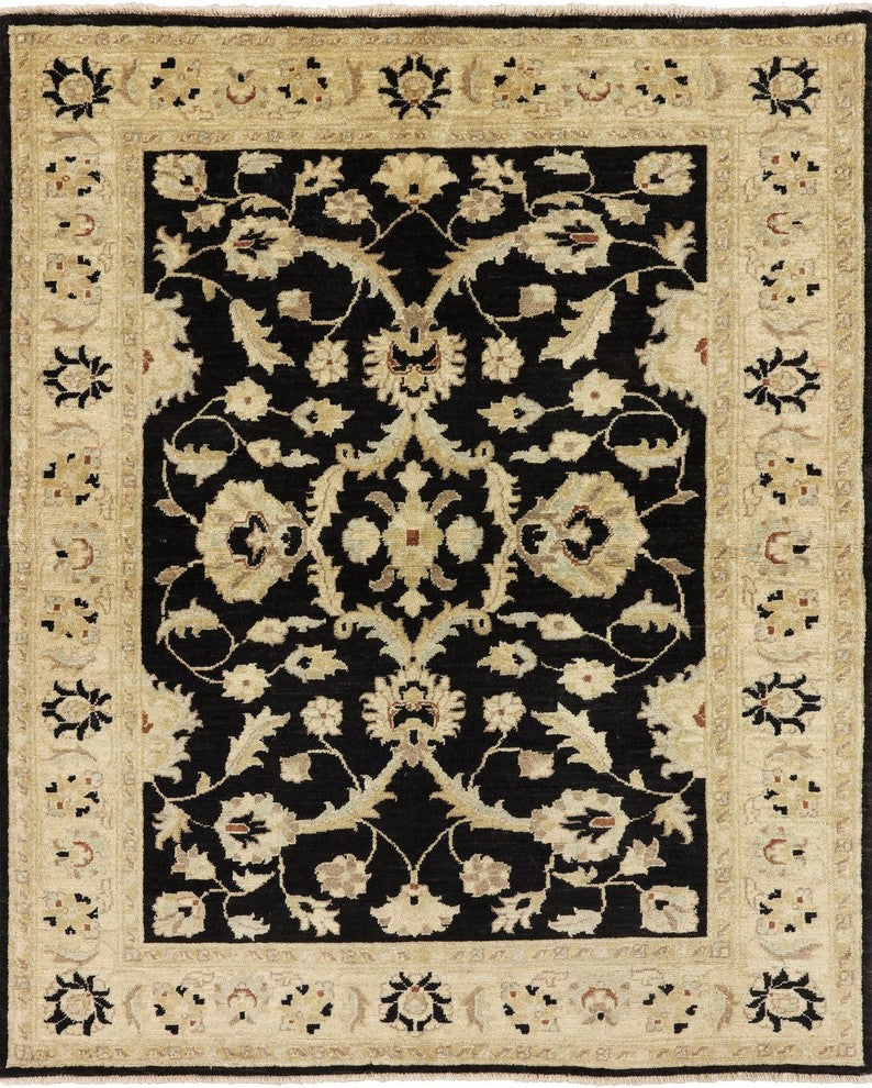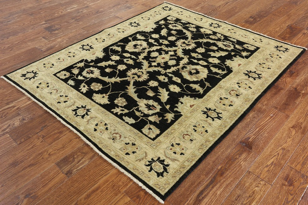 Oushak Style Hand-Knotted Black Chobi Peshawar Wool Rug, 5'x6'