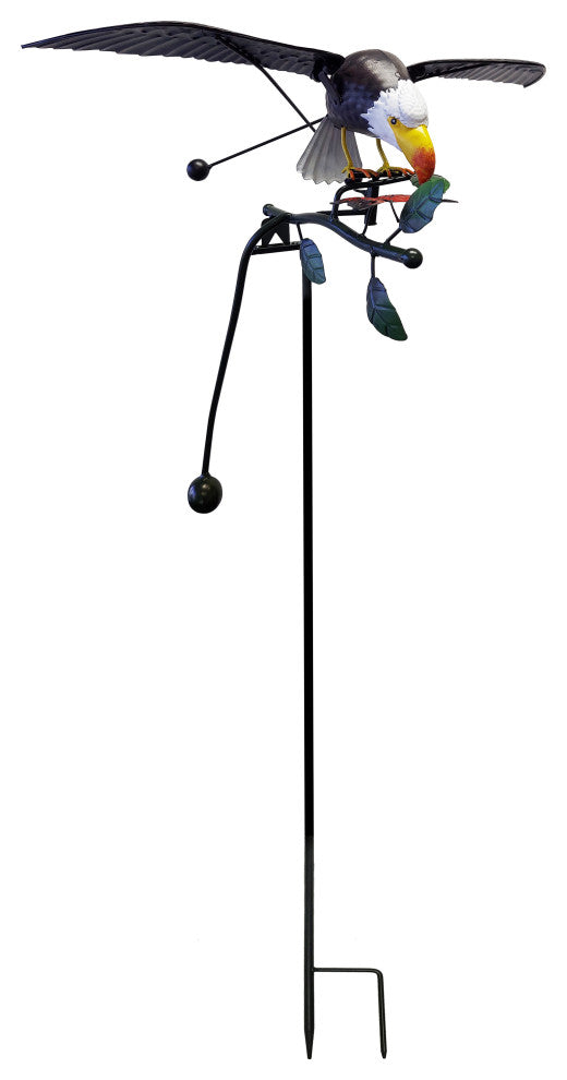 Outdoor Metal Bald Eagle Rustic Balancing Garden Stake Wind Sculpture
