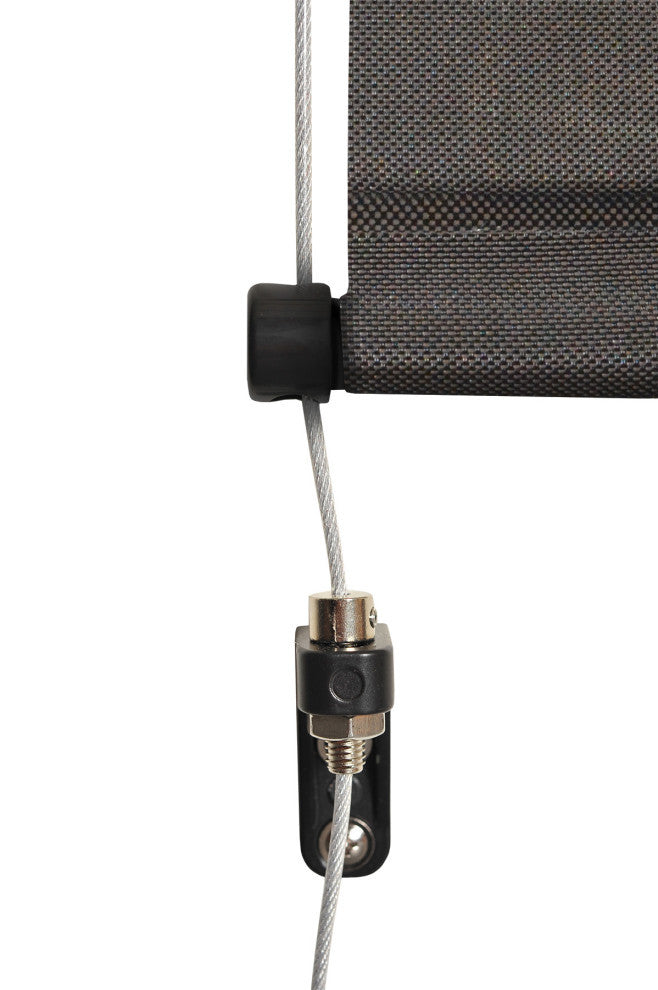 Used as an exterior solar shade that blocks the sun before it hits your window or patio. By blocking the sun before it hits your window or patio, you can dramatically reduce heat build-up, fading of furniture and glares on your T.V. or computer. These shades are made of PVC coated polyester with up to 90% UV block (depending on the color of the fabric). This series comes with an oil rubbed bronze valance that is 3 sided to fully enclose and protect your shade. These shades can be mounted on either the ceiling or wall with our easy install brackets and are operated with a remote control. You can program up to 5 shades onto one remote. There is a 10'' AC power cord on the right side of the shade.