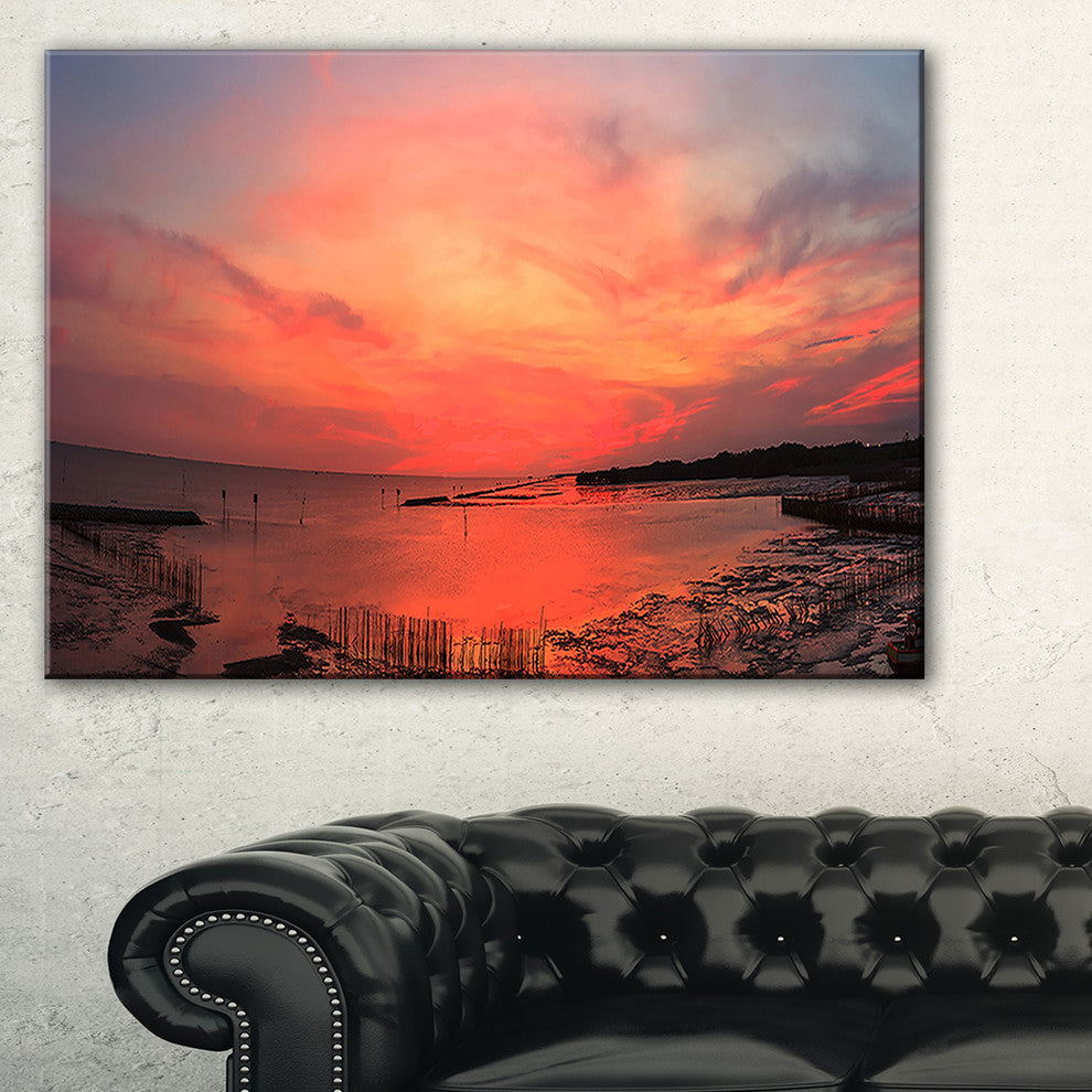 The Outstanding Panorama of Sunset in Sea canvas art print is sure to make an impression on anyone who sees it. This artwork is gallery wrapped around a 1-inch solid wood frame and arrives carefully packaged and entirely ready to hang on the wall. Design Art only uses the highest resolution and pigments to ensure a crisp colorful print that is never faded or pixelated. This artwork is sure to be a conversation starter in any home or office.
