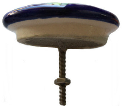 This is hand-painted ceramic drawer pull knob with a lily foreground and a cobalt blue background. This knob will be a unique addition to your home decor, specially if you are in the Mexican/Spanish style of decoration. Add some color to your pull drawer knobs, replace them with this Talavera ceramic knob.Hand-hammered and mold-cut to perfectionHandcrafted by Mexico''s Finest ArtisansWe include 1" long brown screws in all of our hammered copper switch plates