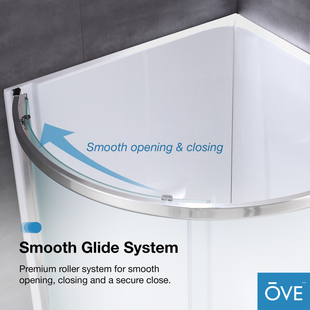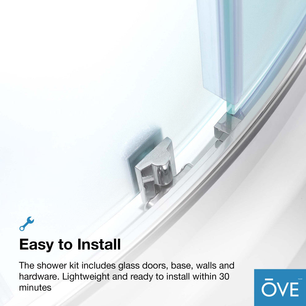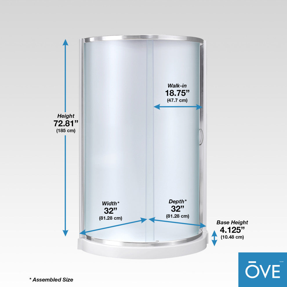 Complete the look of your bathroom with the Breeze 32-in sliding corner shower kit by OVE Decors. The round shape of the framed shower enclosure perfectly fits small to mid-sized bathrooms. The all-in-one shower set includes an acrylic shower pan and walls with frosted tempered glass panels for that added touch of privacy. The sliding mechanism ensures an effortlessly smooth door opening and an ultra-tight seal to keep moisture in. What''s more, the glass door can be installed on either the left or right side, with built-in adjustability and easy to clean practicality. Included matching hardware available in black, chrome, or satin nickel.