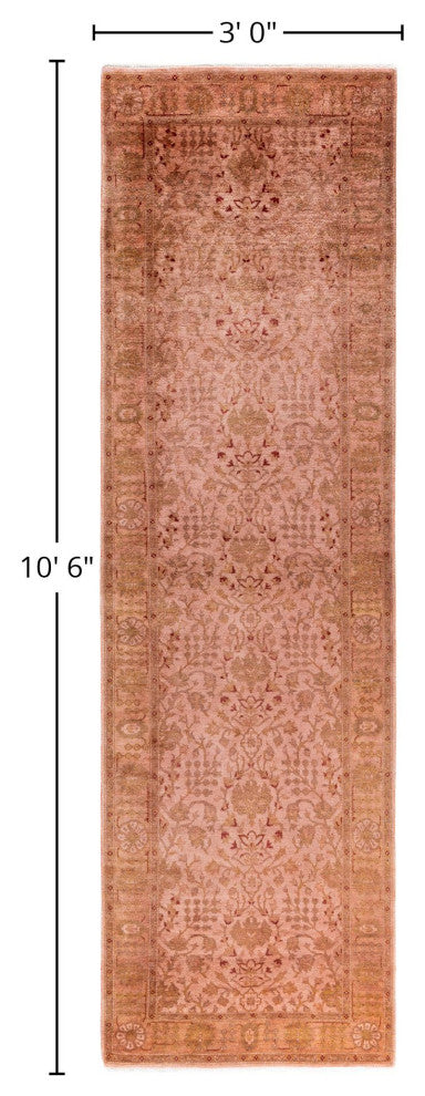 Overdyed area rugs blend vintage charm with bold, modern colors. This process involves taking distressed or faded traditional and antique rugs and saturating them with vibrant, monochromatic dye. This technique enhances the texture of the rugs while preserving the intricate patterns underneath. The result is a striking combination of old and new, with rich hues like deep blue, purple, or bright red. These rugs are perfect for eclectic and contemporary spaces, adding an artistic touch and serving as a dynamic focal point in any room.FeaturesHandcrafted by our team of experts in PakistanExceptional durability with 256 knots per inch constructionConstructed of 100% wool for a soft and cozy feelConvenient 3'' 0" x 10'' 6" dimensions offer the perfect balanced and inviting rug presenceNote that slight color variations may occur due to monitor differences. Embrace the individuality of each rug with minor variations in lengths, widths, and patternsDimensions:Area RugLength: 126 inchesWe believe that a beautiful room starts from the ground up. That is what inspired our founders to start selling hand-knotted rugs over 40 years ago. Since then, our passion for well-designed, impeccably hand-made rugs has never wavered.Experience - With more than 40 years in the rug business, our knowledge of premium hand-knotted rugs is exceptional.Quality - Our focus is on hand-knotted rugs and only hand-knotted rugs. At a minimum, it takes months to complete each rug by hand - that level of workmanship means our rugs are made to last.Variety - Our selection includes styles, sizes, and colors for every space and taste.