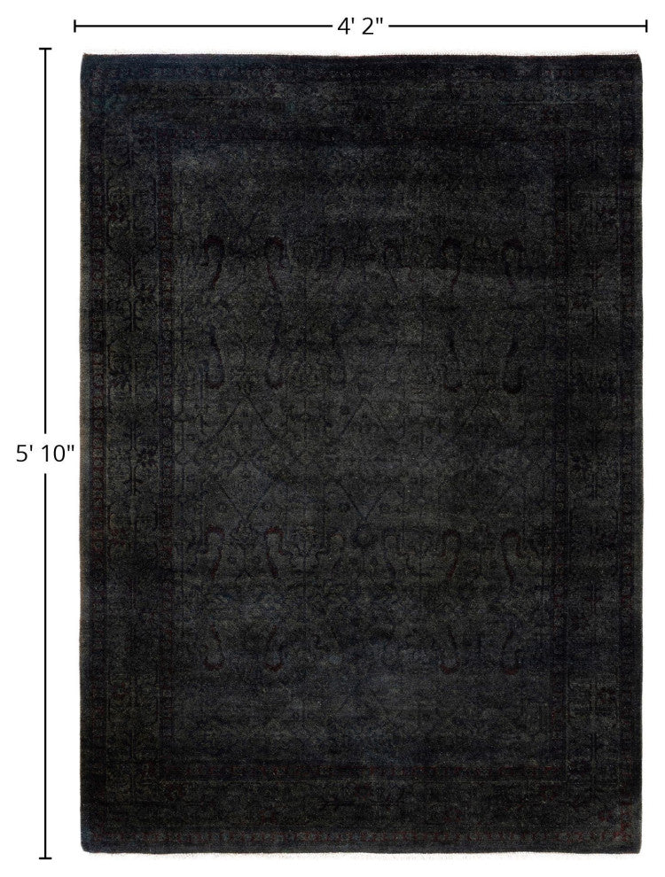 Overdyed One-of-a-Kind Hand-Knotted Area Rug Gray, 4' 2" x 5' 10"