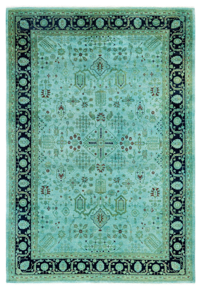 Overdyed One-of-a-Kind Hand-Knotted Area Rug Green, 6' 1" x 8' 10"