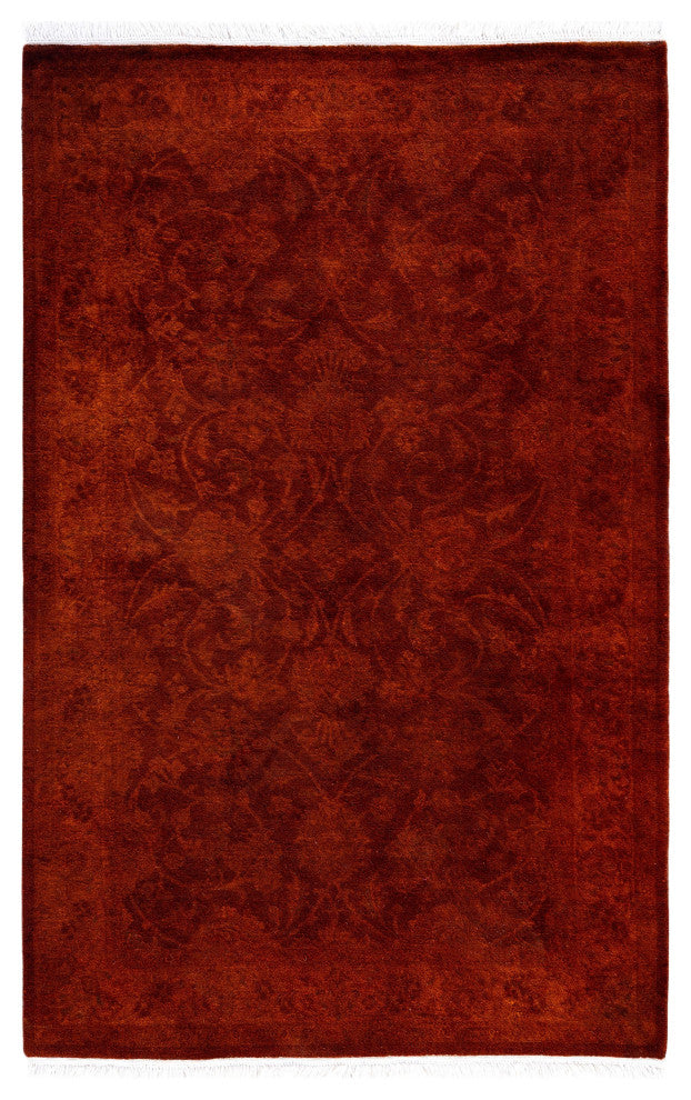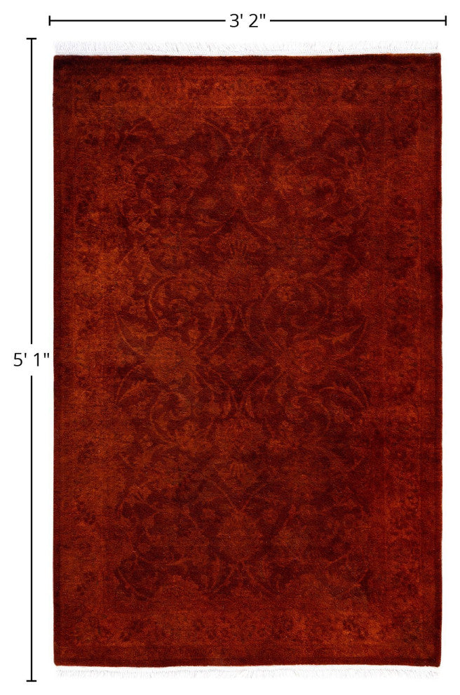 Overdyed One-of-a-Kind Hand-Knotted Area Rug Orange, 3' 2" x 5' 1"