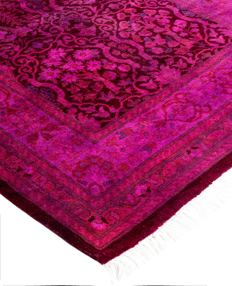 Overdyed area rugs blend vintage charm with bold, modern colors. This process involves taking distressed or faded traditional and antique rugs and saturating them with vibrant, monochromatic dye. This technique enhances the texture of the rugs while preserving the intricate patterns underneath. The result is a striking combination of old and new, with rich hues like deep blue, purple, or bright red. These rugs are perfect for eclectic and contemporary spaces, adding an artistic touch and serving as a dynamic focal point in any room.FeaturesHandcrafted by our team of experts in PakistanExceptional durability with 256 knots per inch constructionConstructed of 100% wool for a soft and cozy feelConvenient 2'' 7" x 13'' 10" dimensions offer the perfect balanced and inviting rug presenceNote that slight color variations may occur due to monitor differences. Embrace the individuality of each rug with minor variations in lengths, widths, and patternsDimensions:Area RugLength: 166 inchesWe believe that a beautiful room starts from the ground up. That is what inspired our founders to start selling hand-knotted rugs over 40 years ago. Since then, our passion for well-designed, impeccably hand-made rugs has never wavered.Experience - With more than 40 years in the rug business, our knowledge of premium hand-knotted rugs is exceptional.Quality - Our focus is on hand-knotted rugs and only hand-knotted rugs. At a minimum, it takes months to complete each rug by hand - that level of workmanship means our rugs are made to last.Variety - Our selection includes styles, sizes, and colors for every space and taste.