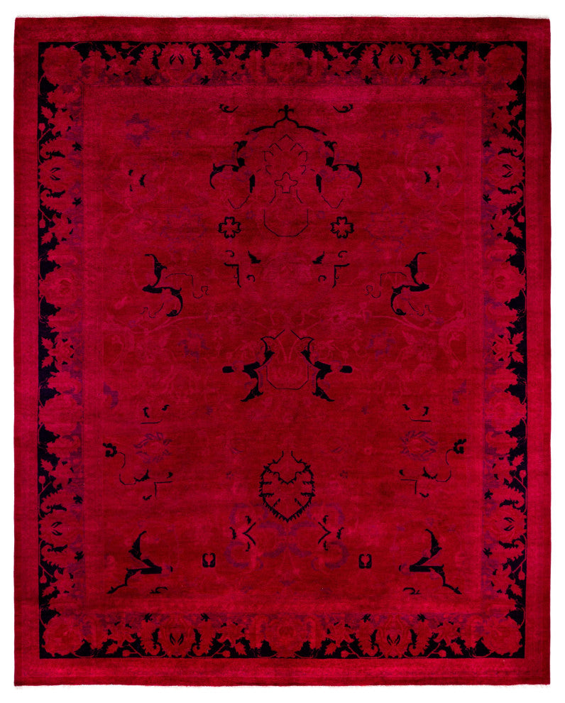 Overdyed area rugs blend vintage charm with bold, modern colors. This process involves taking distressed or faded traditional and antique rugs and saturating them with vibrant, monochromatic dye. This technique enhances the texture of the rugs while preserving the intricate patterns underneath. The result is a striking combination of old and new, with rich hues like deep blue, purple, or bright red. These rugs are perfect for eclectic and contemporary spaces, adding an artistic touch and serving as a dynamic focal point in any room.FeaturesHandcrafted by our team of experts in PakistanExceptional durability with 256 knots per inch constructionConstructed of 100% wool for a soft and cozy feelConvenient 8'' 3" x 10'' 2" dimensions offer the perfect balanced and inviting rug presenceNote that slight color variations may occur due to monitor differences. Embrace the individuality of each rug with minor variations in lengths, widths, and patternsDimensions:Area RugLength: 122 inchesWe believe that a beautiful room starts from the ground up. That is what inspired our founders to start selling hand-knotted rugs over 40 years ago. Since then, our passion for well-designed, impeccably hand-made rugs has never wavered.Experience - With more than 40 years in the rug business, our knowledge of premium hand-knotted rugs is exceptional.Quality - Our focus is on hand-knotted rugs and only hand-knotted rugs. At a minimum, it takes months to complete each rug by hand - that level of workmanship means our rugs are made to last.Variety - Our selection includes styles, sizes, and colors for every space and taste.