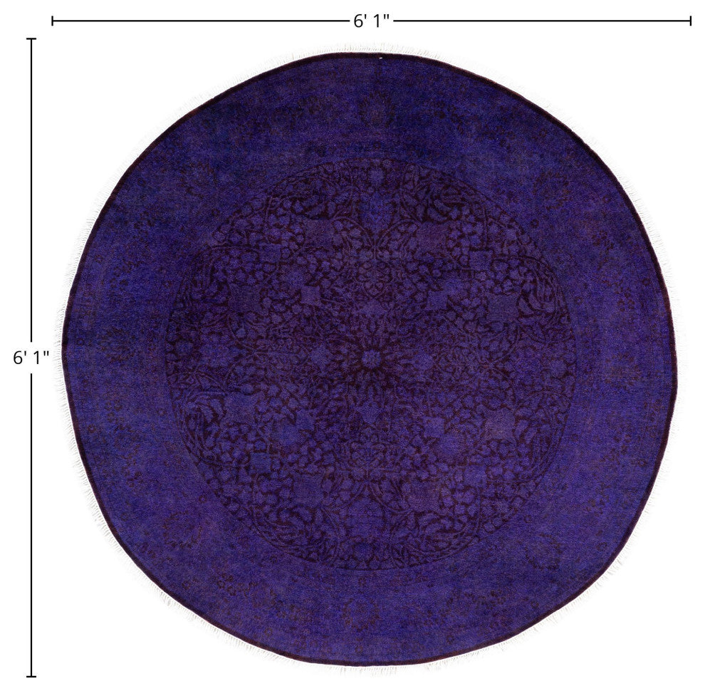 Overdyed area rugs blend vintage charm with bold, modern colors. This process involves taking distressed or faded traditional and antique rugs and saturating them with vibrant, monochromatic dye. This technique enhances the texture of the rugs while preserving the intricate patterns underneath. The result is a striking combination of old and new, with rich hues like deep blue, purple, or bright red. These rugs are perfect for eclectic and contemporary spaces, adding an artistic touch and serving as a dynamic focal point in any room.FeaturesHandcrafted by our team of experts in PakistanExceptional durability with 256 knots per inch constructionConstructed of 100% wool for a soft and cozy feelConvenient 6'' 1" x 6'' 1" dimensions offer the perfect balanced and inviting rug presenceNote that slight color variations may occur due to monitor differences. Embrace the individuality of each rug with minor variations in lengths, widths, and patternsDimensions:Area RugLength: 73 inchesWe believe that a beautiful room starts from the ground up. That is what inspired our founders to start selling hand-knotted rugs over 40 years ago. Since then, our passion for well-designed, impeccably hand-made rugs has never wavered.Experience - With more than 40 years in the rug business, our knowledge of premium hand-knotted rugs is exceptional.Quality - Our focus is on hand-knotted rugs and only hand-knotted rugs. At a minimum, it takes months to complete each rug by hand - that level of workmanship means our rugs are made to last.Variety - Our selection includes styles, sizes, and colors for every space and taste.