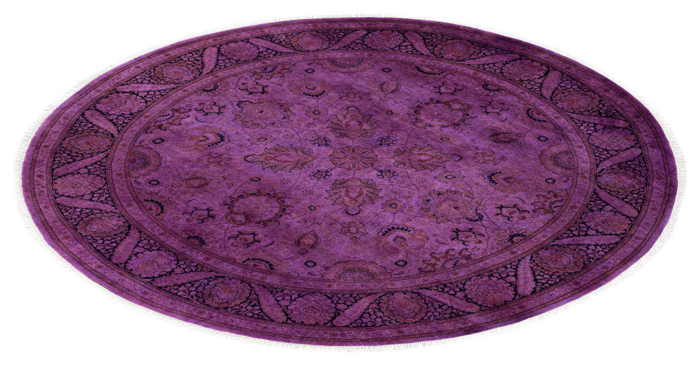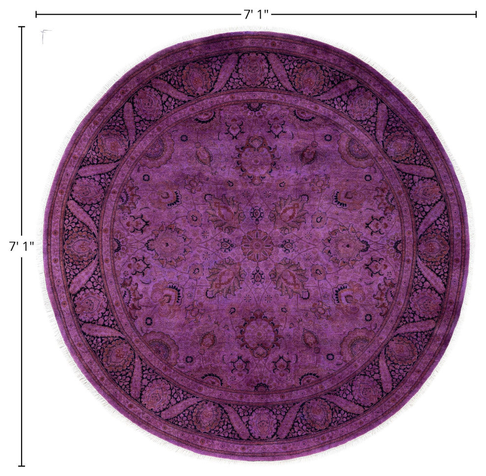 Overdyed One-of-a-Kind Hand-Knotted Area Rug Purple, 7' 1" x 7' 1"