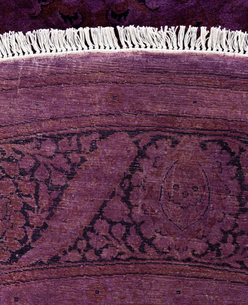 Overdyed area rugs blend vintage charm with bold, modern colors. This process involves taking distressed or faded traditional and antique rugs and saturating them with vibrant, monochromatic dye. This technique enhances the texture of the rugs while preserving the intricate patterns underneath. The result is a striking combination of old and new, with rich hues like deep blue, purple, or bright red. These rugs are perfect for eclectic and contemporary spaces, adding an artistic touch and serving as a dynamic focal point in any room.FeaturesHandcrafted by our team of experts in PakistanExceptional durability with 256 knots per inch constructionConstructed of 100% wool for a soft and cozy feelConvenient 7'' 1" x 7'' 1" dimensions offer the perfect balanced and inviting rug presenceNote that slight color variations may occur due to monitor differences. Embrace the individuality of each rug with minor variations in lengths, widths, and patternsDimensions:Area RugLength: 85 inchesWe believe that a beautiful room starts from the ground up. That is what inspired our founders to start selling hand-knotted rugs over 40 years ago. Since then, our passion for well-designed, impeccably hand-made rugs has never wavered.Experience - With more than 40 years in the rug business, our knowledge of premium hand-knotted rugs is exceptional.Quality - Our focus is on hand-knotted rugs and only hand-knotted rugs. At a minimum, it takes months to complete each rug by hand - that level of workmanship means our rugs are made to last.Variety - Our selection includes styles, sizes, and colors for every space and taste.