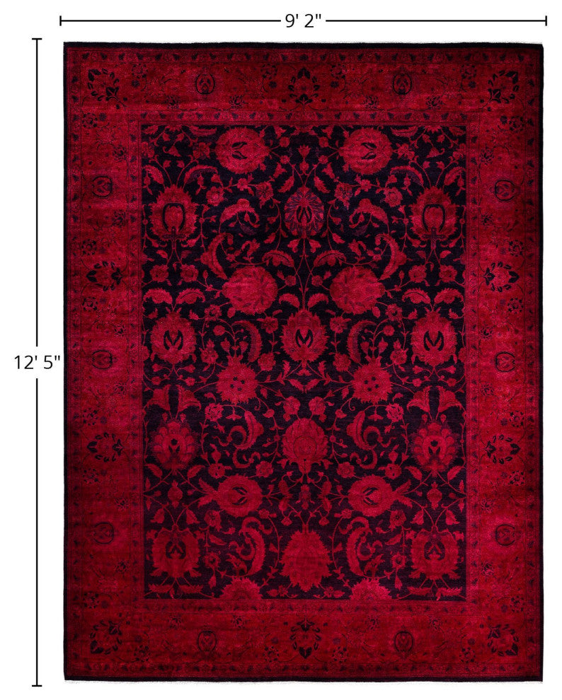 Overdyed area rugs blend vintage charm with bold, modern colors. This process involves taking distressed or faded traditional and antique rugs and saturating them with vibrant, monochromatic dye. This technique enhances the texture of the rugs while preserving the intricate patterns underneath. The result is a striking combination of old and new, with rich hues like deep blue, purple, or bright red. These rugs are perfect for eclectic and contemporary spaces, adding an artistic touch and serving as a dynamic focal point in any room.FeaturesHandcrafted by our team of experts in PakistanExceptional durability with 256 knots per inch constructionConstructed of 100% wool for a soft and cozy feelConvenient 9'' 2" x 12'' 5" dimensions offer the perfect balanced and inviting rug presenceNote that slight color variations may occur due to monitor differences. Embrace the individuality of each rug with minor variations in lengths, widths, and patternsDimensions:Area RugLength: 149 inchesWe believe that a beautiful room starts from the ground up. That is what inspired our founders to start selling hand-knotted rugs over 40 years ago. Since then, our passion for well-designed, impeccably hand-made rugs has never wavered.Experience - With more than 40 years in the rug business, our knowledge of premium hand-knotted rugs is exceptional.Quality - Our focus is on hand-knotted rugs and only hand-knotted rugs. At a minimum, it takes months to complete each rug by hand - that level of workmanship means our rugs are made to last.Variety - Our selection includes styles, sizes, and colors for every space and taste.