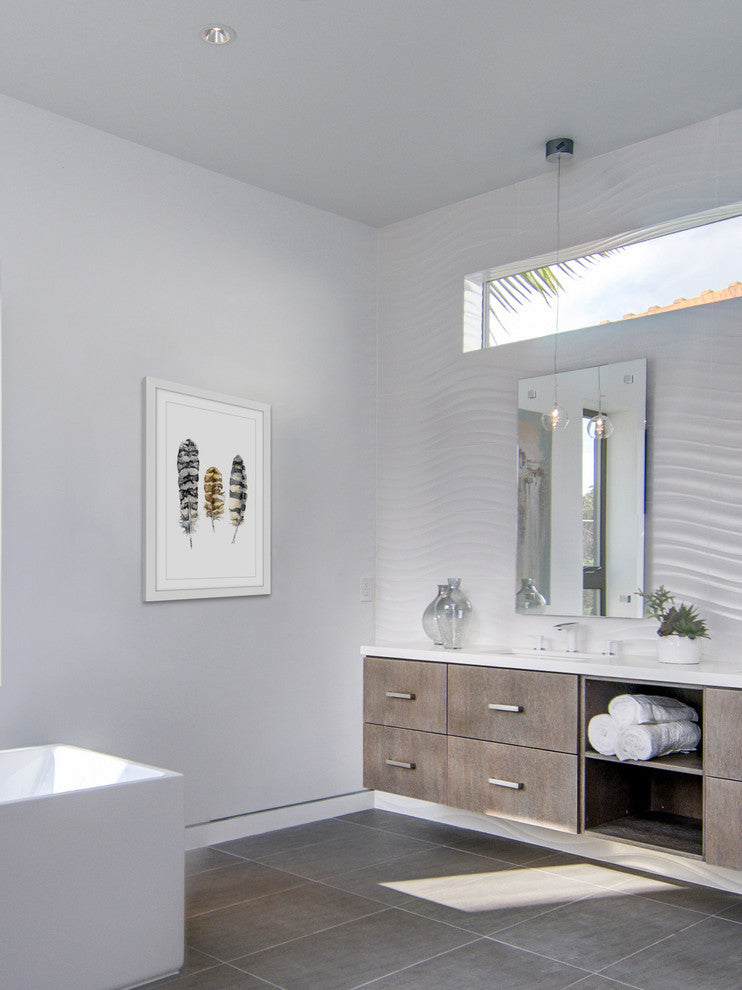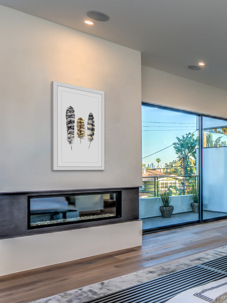 "Owl Feathers" Framed Print by Rachel Byler features vivid tones and supple artistry. Mounted in a gorgeous frame, this 24 inch wide by 36 inch tall piece will be an exceptional addition to any room. Top quality Giclee print on high resolution Archive Paper Artwork by Rachel Byler Professionally framed and mounted on acid free archive matte High quality durable non-warping frame Arrives ready to hang Includes a certificate of authenticityMade in the USAArtist signature on the front