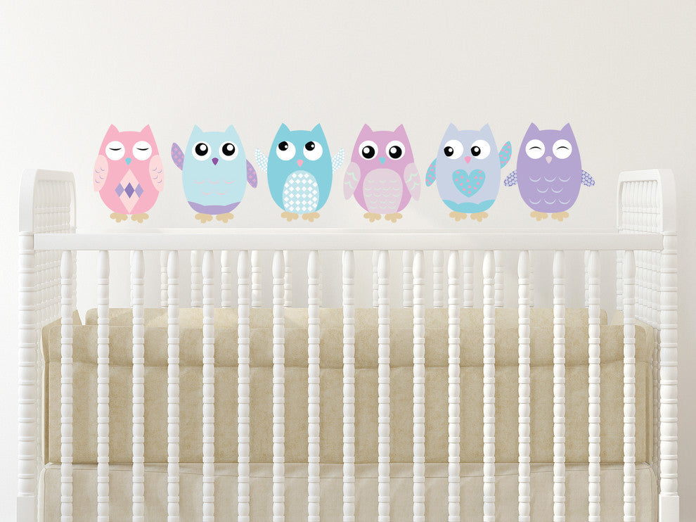 These adorable Owl Wall Decals come in a set of 6 owls in a variety of different colors and patterns. The decals are made from a high quality fabric material that is reusable and repositionable. Available in 4 different sizes. There are 4 color options as well!