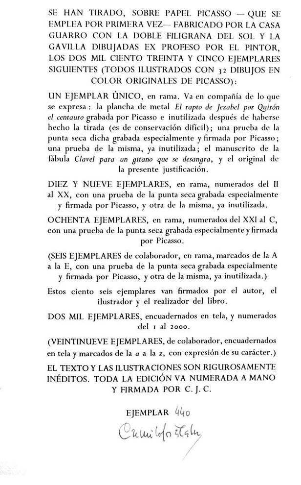 Limited Edition Lithograph. 21.6x24.7 cm. Frame size: 13.5 x 13.5 in. Title: La Musa y el Rio. Color Numbered Edition Lithograph on watermarked woven paper with deckled edges. Sur les presses de Sociedad Alianza de Artes Graficas, Barcelona, May 20, 1962. Transfer signed and is watermarked, showing authenticity. Included with artwork: Gallery Prepared Documentation included (Certificate of Authentication, Provenance, Catalogue reference c116 and Limited Edition Numbered Justification Copy).