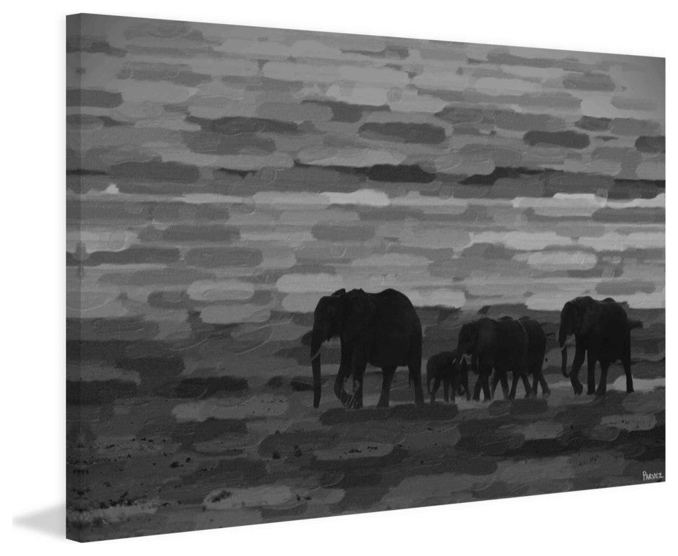 Striking and unique, the "Pachyderm Family" Print on Canvas by Parvez Taj will bring your walls to life. Printed on canvas, this 45 inch wide by 30 inch tall contemporary artwork will make a statement in any living room, dining room, or bedroom.- Fine art canvas print by Parvez Taj- Professionally hand stretched- Gallery wrapped in sustainable, non-warping wood- Arrives ready to hang- Made in the USA- Includes a certificate of authenticity- Artist signature on the front