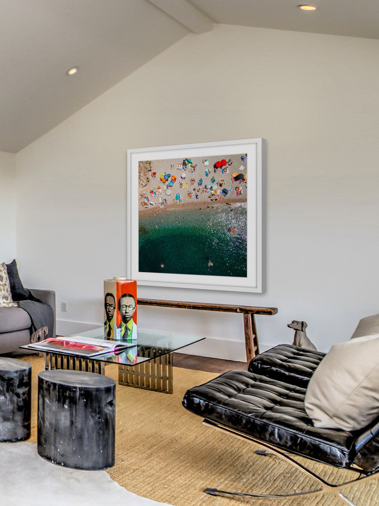 "Packed Beach" Framed Print by Karolis Janulis features vivid tones and supple artistry. Mounted in a gorgeous frame, this 18 inch wide by 18 inch tall piece will be an exceptional addition to any room. Top quality Giclee print on high resolution Archive Paper Artwork by Karolis Janulis Professionally framed and mounted on acid free archive matte High quality durable non-warping frame Arrives ready to hang Includes a certificate of authenticity Made in the USA