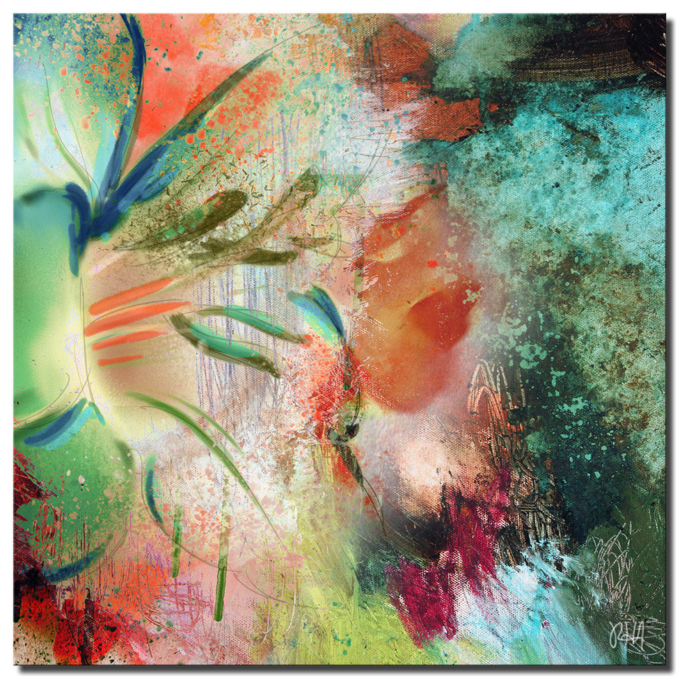 Painted Petals LIX is a gallery wrapped canvas that contains the abstract nature of flower just taking form. Blossoming into a world of complex states and tumultuous tempers, unyielding to its new environment, the flower bursts forth with glowing sheens - its petals green with wonder, its stamens red with passion.