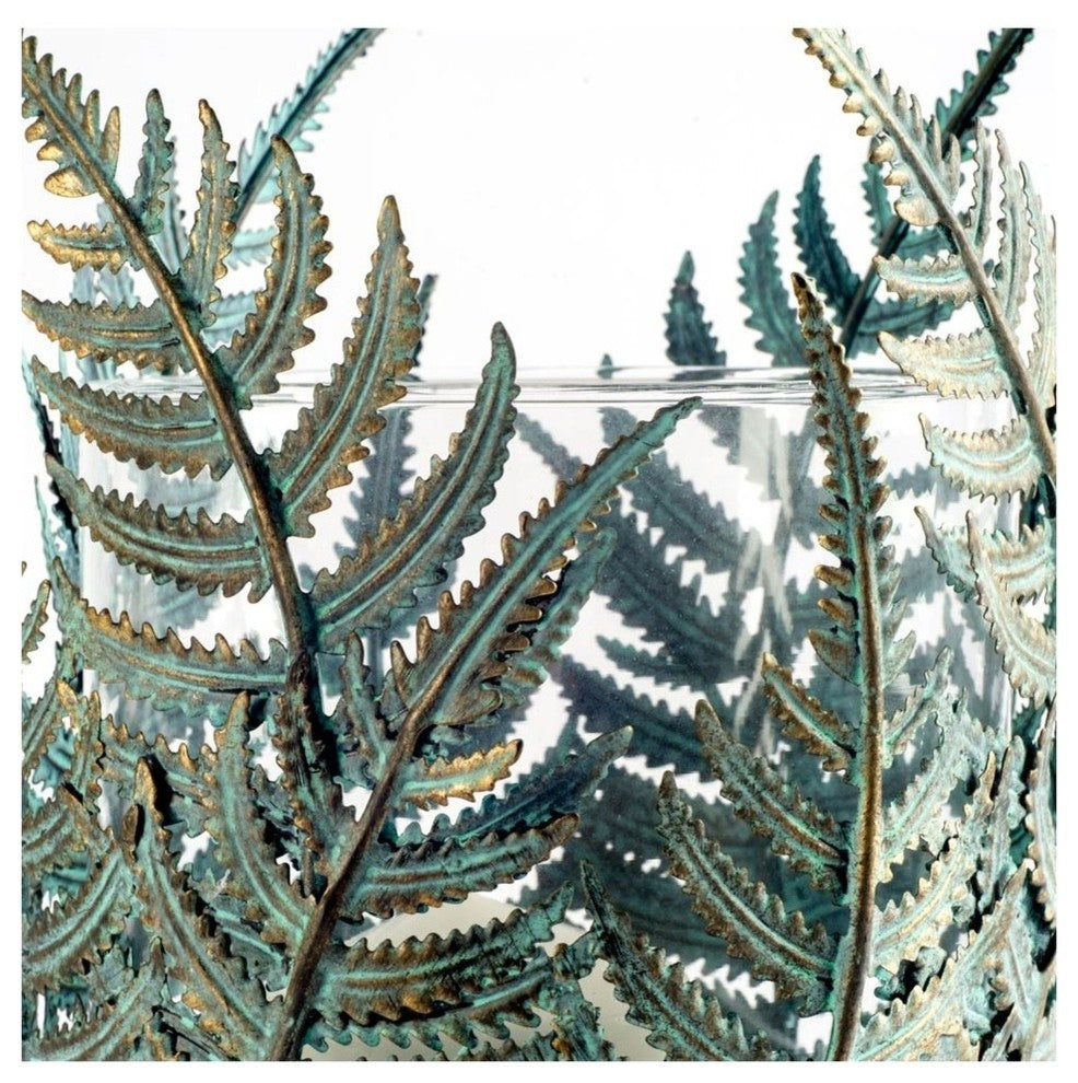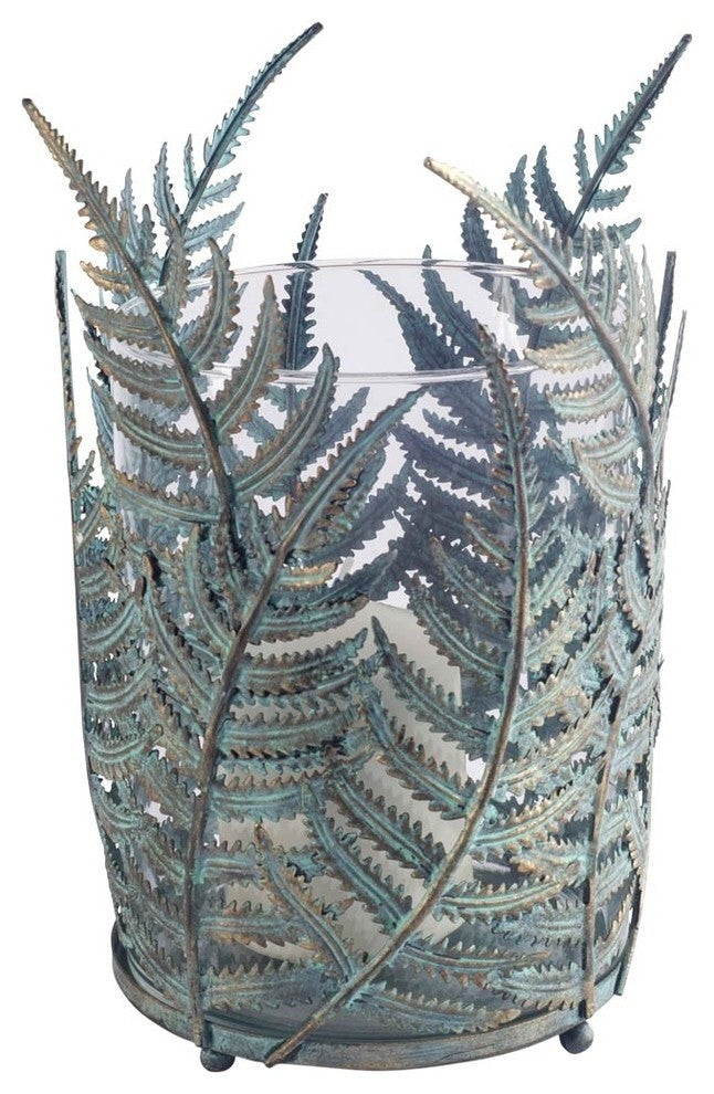 Circular fern leaf candle holder with glass hurricane cylinder. (Candles not included)
