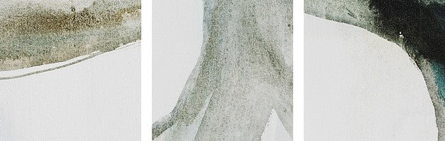 Gallery-wrapped canvas entitled, "Paleo IV".Abstract painting in contrasting neutral and cool tones of various rounded shapes that connect and intersect, on a solid light background.Our wrapped canvases feature a proprietary design that prevents warping or sagging over time. By using archival inks and artist-grade canvas, our premium canvases are sure to add that extra touch to any space. Lastly, our canvases are finished with a closed back that incorporates pre-installed hanging hardware for easy installation.