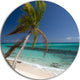 Palm Bent To Picturesque Seashore, Modern Seascape Round Wall Art, 23"