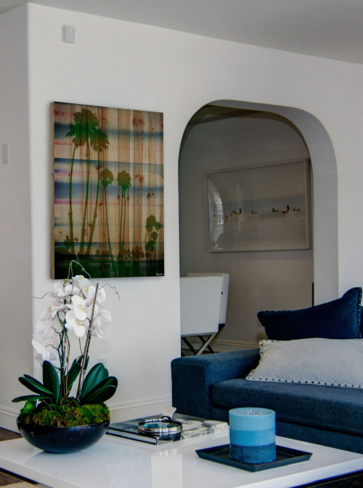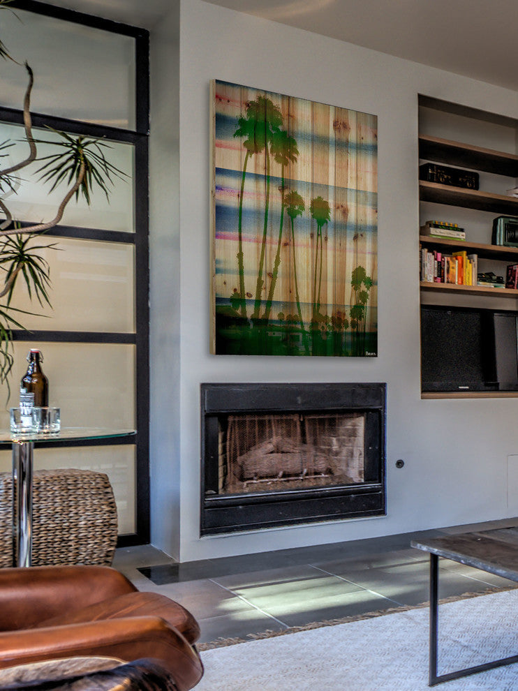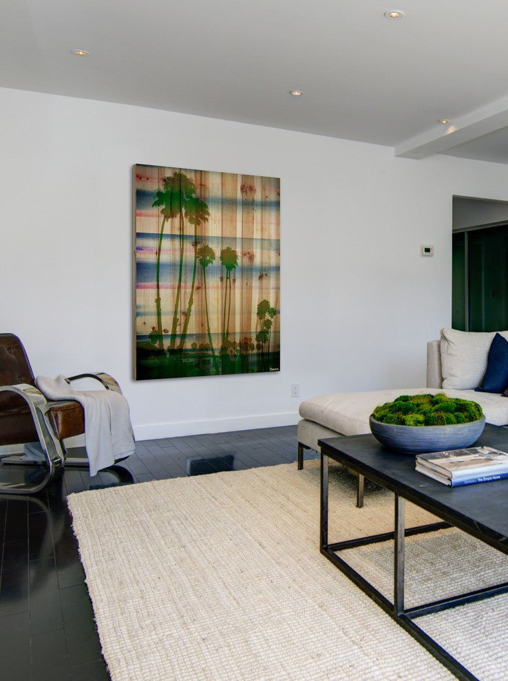 "Palm Rainbows" Print on Natural Pine Wood, 30"x45"
