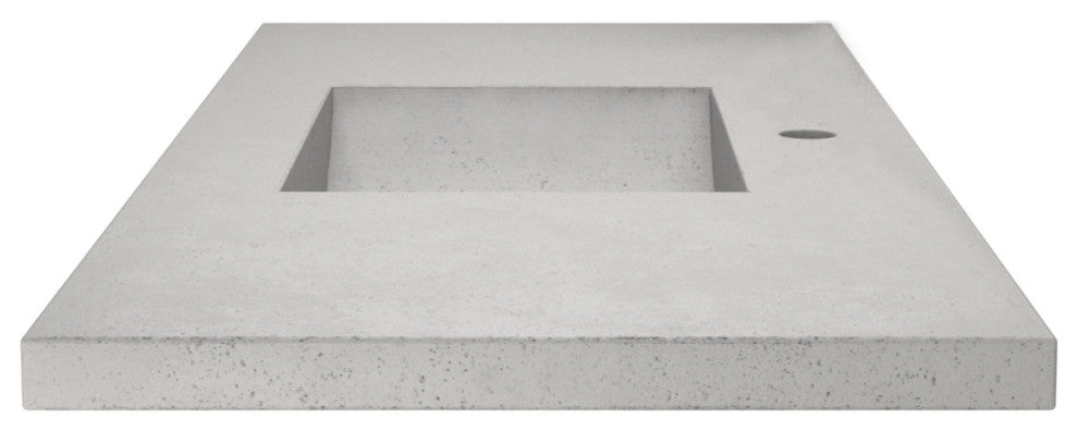 The Palomar Vanity Top with Integral Sink is handcrafted of NativeStone®, an innovative blend of cement and jute fiber that is surprisingly lightweight for concrete, remarkably strong, and refreshingly easy to clean. Available in four finishes: Ash, Slate, Pearl and Earth; pairs beautifully with Native Trails vanity bases.Due to their handcrafted nature, no two products will be exactly the same and may vary in finish, texture and other details.Outside Dimensions (30"): 30.5"³ x 21.75"³ x 5.25"³Outside Dimensions (36"): 36.5"³ x 21.75"³ x 5.25"³Outside Dimensions (48"): 48.5"³ x 21.75"³ x 5.25"³Features:-Top features a rectangular integrated sink basin (Basin size: 18" x 12" x 4" with 1.5" drain) -Handcrafted from an innovative blend of concrete and jute fiber-NEXT-GENERATION SEALER! "“ Now sealed with revolutionary NativeStone® Shield for the ultimate protection from stains, scratches and cracks-Pair with any compatible vanity base from Native Trails to complete your vanity set-Covered under Native Trails limited lifetime warranty-Clean with mild, non-abrasive soap and cleaners-UPC/cUPC compliant