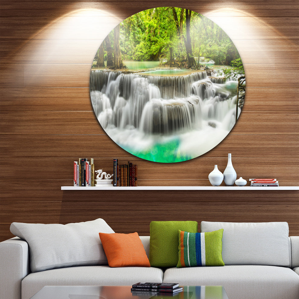 Panoramic Erawan Waterfall, Landscape Photo Disc Metal Wall Art, 11"
