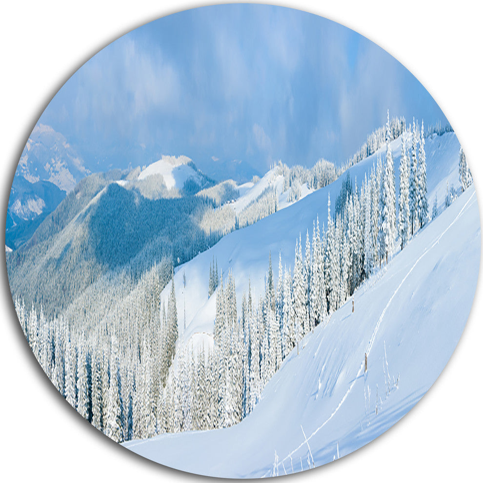 Panoramic Winter Mountain, Landscape Photo Disc Metal Artwork, 11"