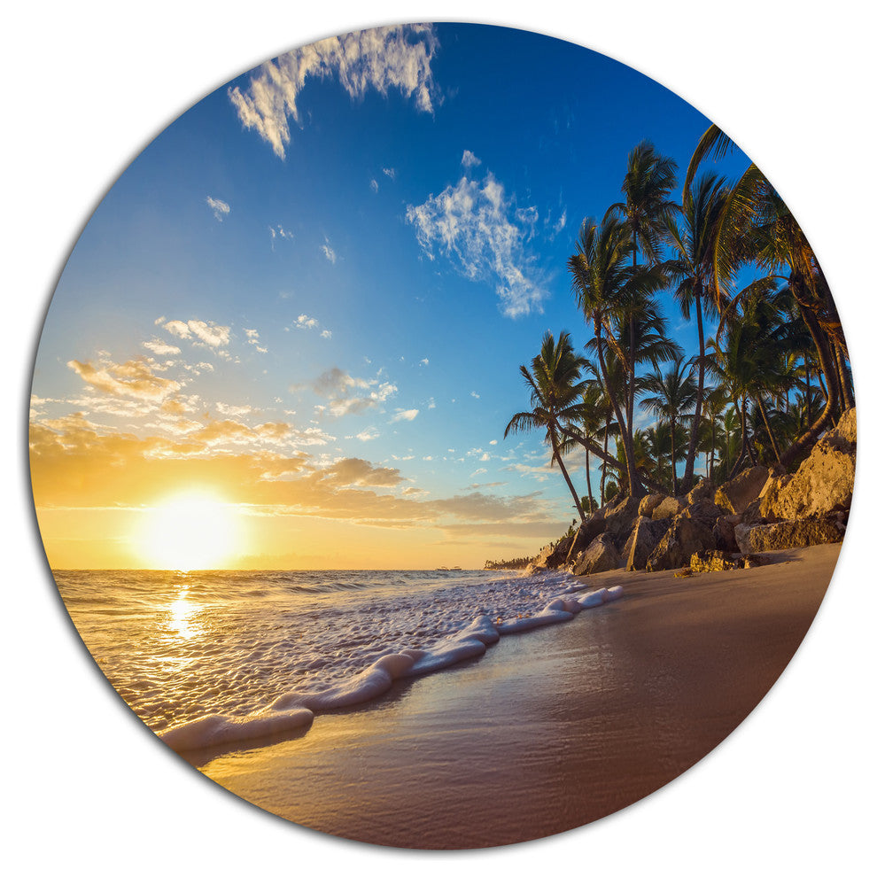 Paradise Tropical Island Beach Sunrise, Seashore Round Wall Art, 23"