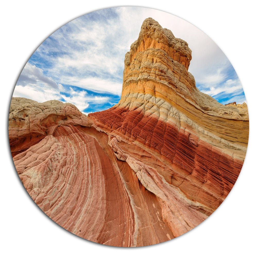Bring Contemporary Abstraction to your home with this large Circle Metal wall art. This Paria Plateau in Northern Arizona Metal Artwork makes it the focal point of any room or office.