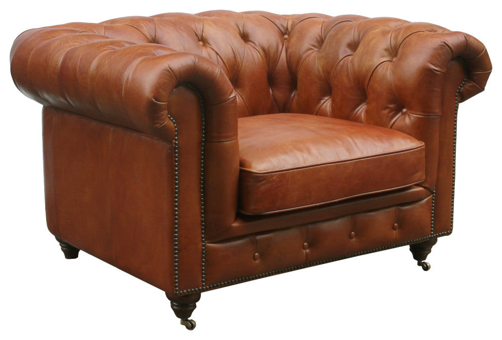 Paris Club Top Grain Leather Leather Tufted Club Chair, Brown