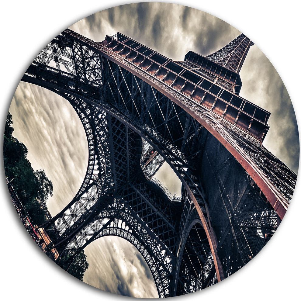 Paris Eiffel Tower In Grungy Dramatic Style, Disc Metal Wall Art, 23"