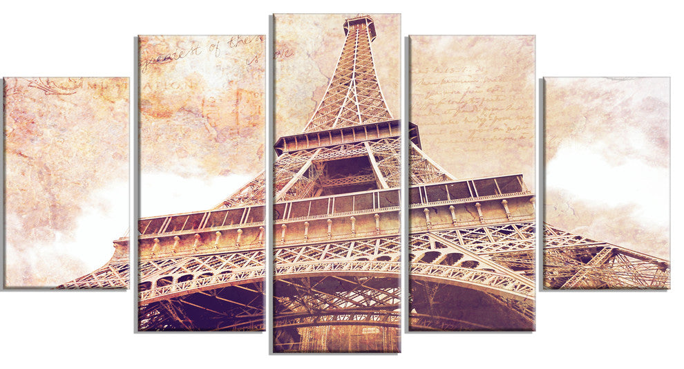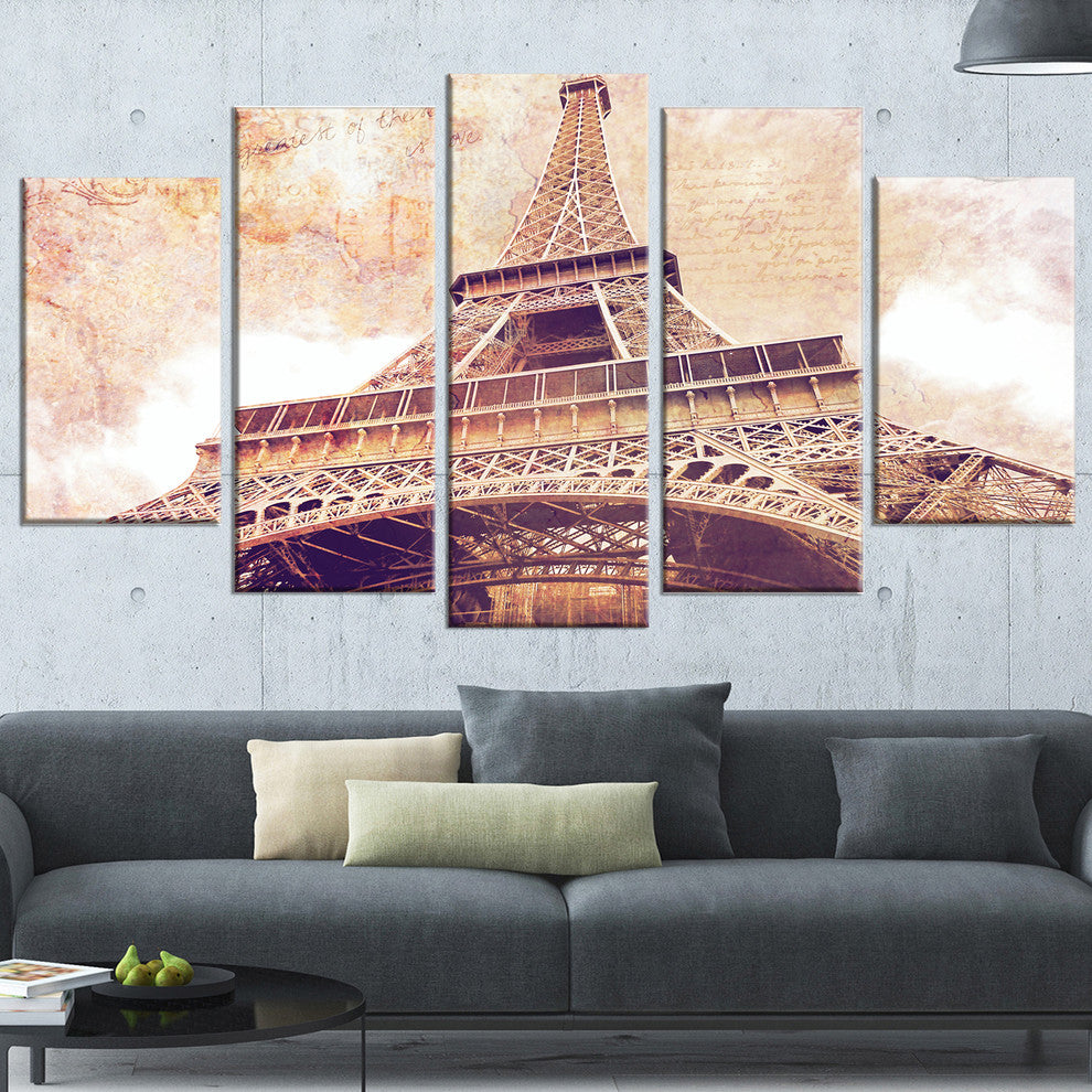 "Paris Eiffel Tower Paris Postcard Design" Cityscape Wall Art, 60"x32", 5-Panels