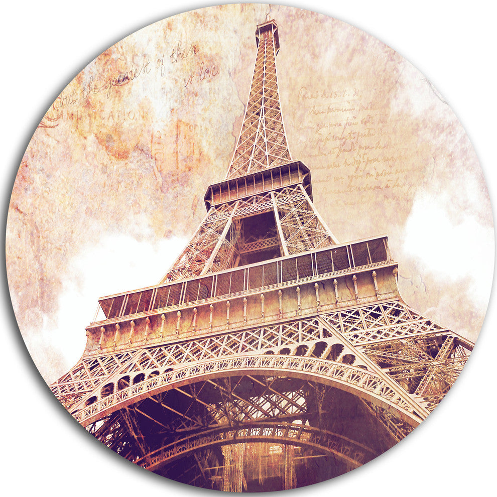 Paris Eiffel Tower Paris Postcard Design, Round Metal Wall Art, 11"