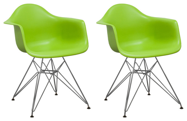 Paris Tower Dining Arm Chair with Chrome Legs, Set of 2, Green
