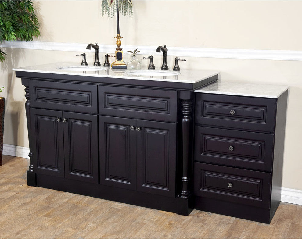 Parme 74" W Single Vanity, Dark Mahogany With Marble Vanity Top, White