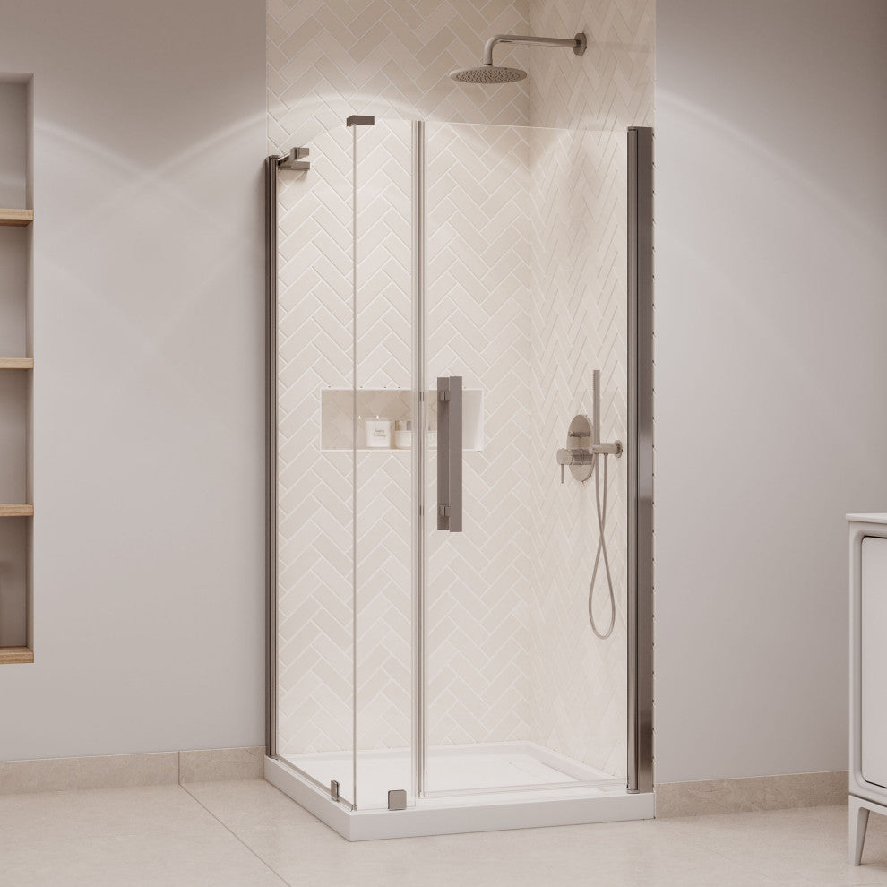 Pasadena 36"Wx36"Dx74 3/4"H Corner Pivot Shower Kit Nickel Base
