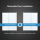 Frameless reversible door installation with built-in door magnet for a secure and tight close; no more leaks, no more wet floors