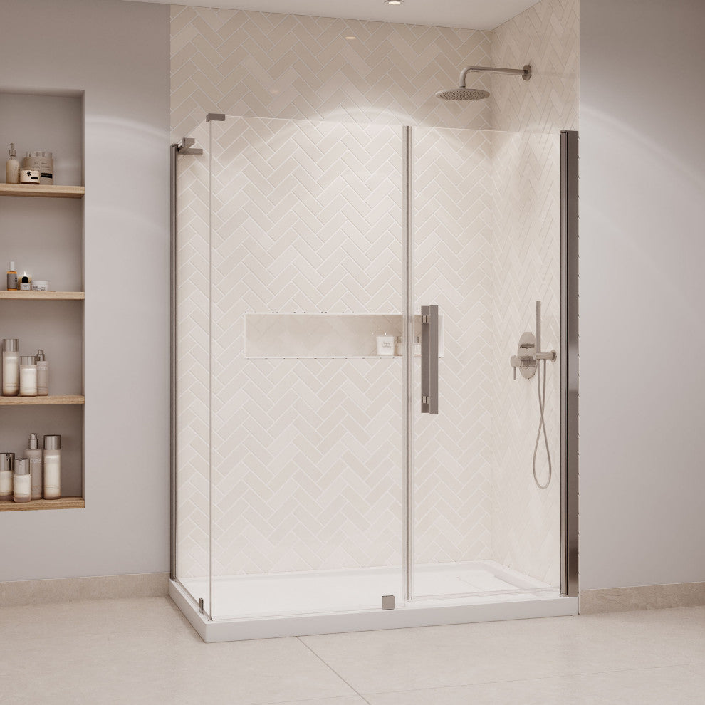 Pasadena 60"Wx36"Dx74 3/4"H Corner Pivot Shower Kit Nickel Base
