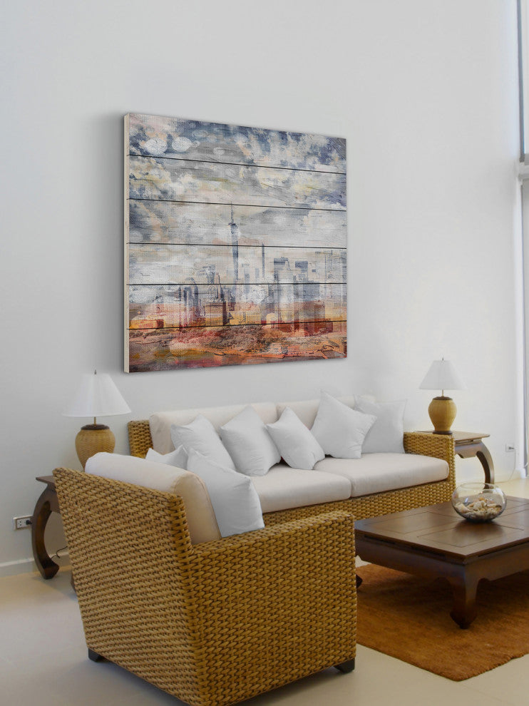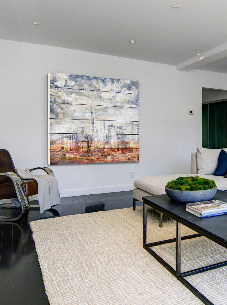 "Pastel NYC" Print on White Wood, 40"x40"