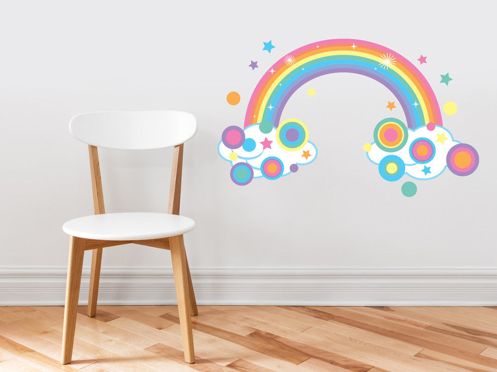 Our beautiful Rainbow Fabric Wall Decal is a removable, reusable, non-toxic fabric wall decal that brings joy and color to a baby nursery, play room, or child''s room. Comes with a variety of different colored polka dots and stars (Please see detailed image above)