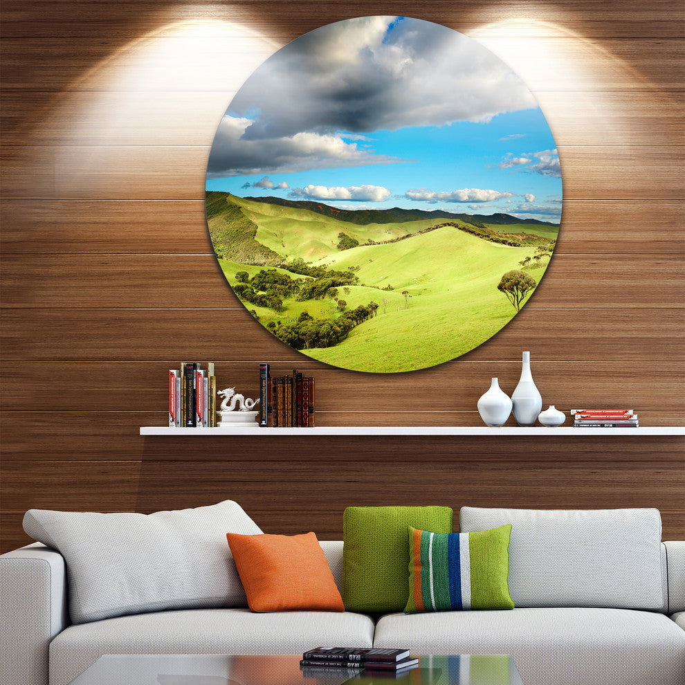 Pasture Under Cloudy Sky, Landscape Photo Disc Metal Artwork, 38"